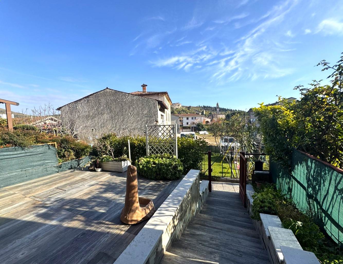 A pochi passi dal centro storico di Soave, in un contesto residenziale tranquillo, proponiamo in vendita questa villetta a schiera con vista castello.
